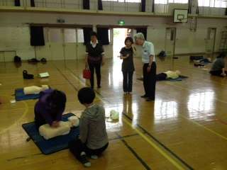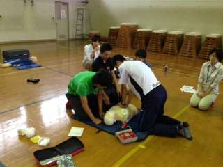 5月29日(水)午後2時30分より朱雀第六小学校で救命救急の実技研修会がありました。本校の教職員だけでなく,朱雀第六小学校・朱雀第二小学校の教職員と一緒に心配蘇生法やAEDに関する演習を行いました。実際に救命措置を行う事がないことが一番ですが,万が一のことを想定して真剣に取り組みました。