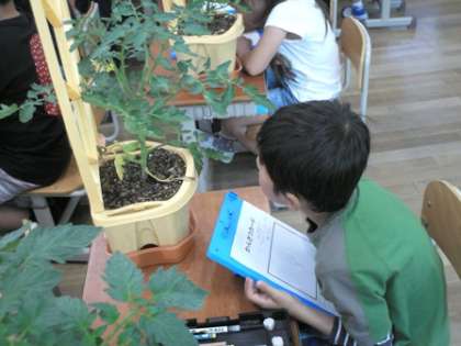 国語の「かんさつ名人になろう」で学習したように,においをかいだり,葉の枚数を数えたり,2年生は全員『かんさつ名人』です。