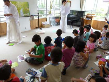 今日は北野天満宮の宮司さんをお招きし,ホタルについての話を聞きました。