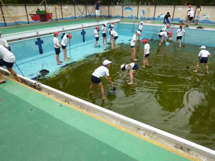 きれいになったプールを見て,子ども達は達成感を感じたようです。