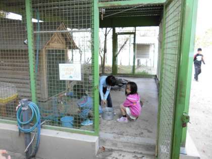 新2年生が,昨年度から引き続いて動物の世話をしてくれています。えさを入れたり,水を換えたりといった作業を慣れた手つきで進めていきます。
