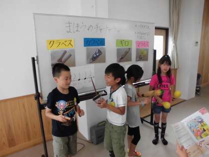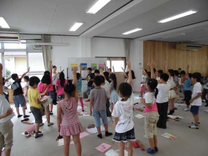 今日は「まほうのチャチャチャ」の音楽に合わせて,様々な打楽器を演奏しました。
