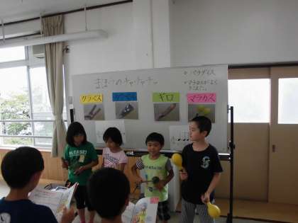 ギロ・マラカス・カウベル・クラベスの4つの打楽器を演奏しました。