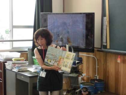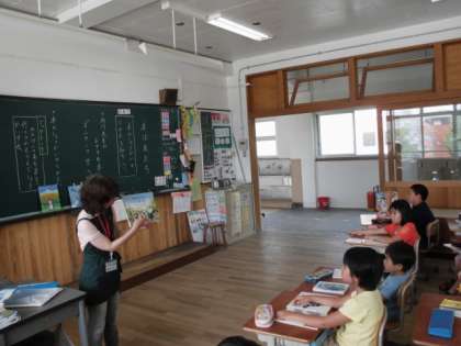 国語科「本は友だち」の学習に,本校に図書支援員として来ていただいている西川先生に本の紹介の方法を教えていただきました。