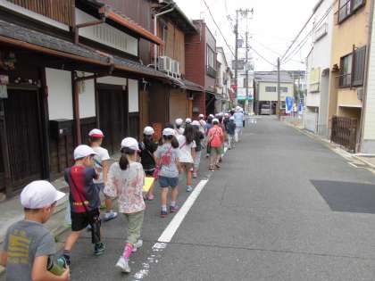 今日はお天気が心配な中,学区の北側へ町探検をしました。
