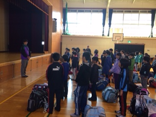 体育館での出発式を終え,4泊5日の宿泊学習に向かいます。