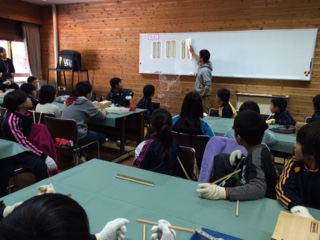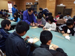 今日の夕飯から5日間使う竹ばしを作っています。竹の香りを感じながら,心をこめて作りました。