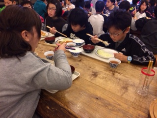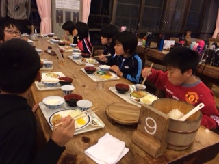 井ノ口山登山でみんなお腹をすかせていました。みんな元気で,しっかり夕飯を食べています。