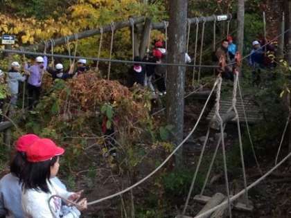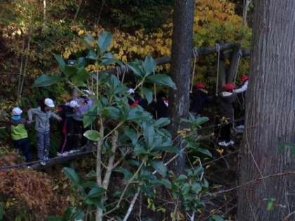 冒険の森で、アスレチックに挑戦しました。自然に囲まれて活動していると、山の動物になったような気がします。ケガのないように楽しんでいます。