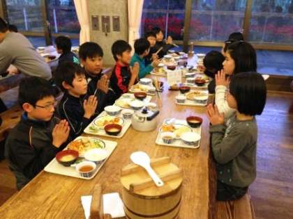 山の家での最後の夕食です。昼食をお腹いっぱい食べましたが、冒険の森でたくさん活動したので、とてもお腹がすきました。美味しくいただくことができて良かったです。