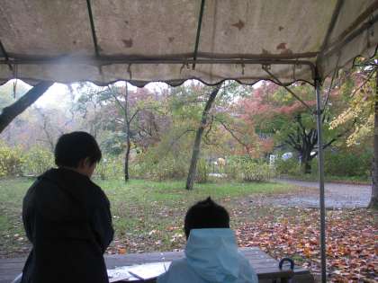 午前中は春・夏と続けて観察してきた樹木のスケッチをしました。