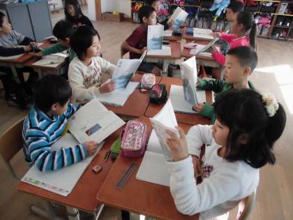 国語科「すがたをかえる大豆」を読んで,わかりやすい説明の仕方のくふうをグループで話し合いました。たくさんのくふうを見つけることができました。