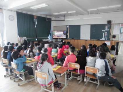 今日は,自分たちの発表の様子をビデオを見て振り返りました。