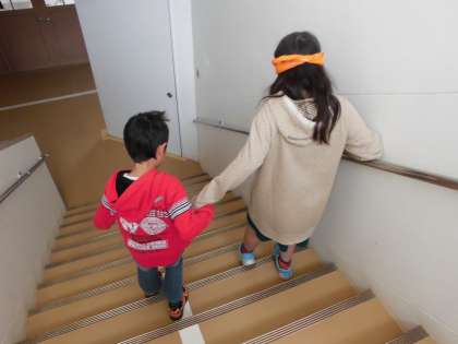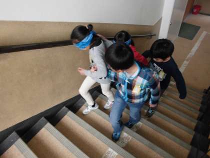 点字表示や点字ブロック,音響信号機がどうしてあるのかを考えた後に,実際に目隠しをして,校舎をペアで回りました。