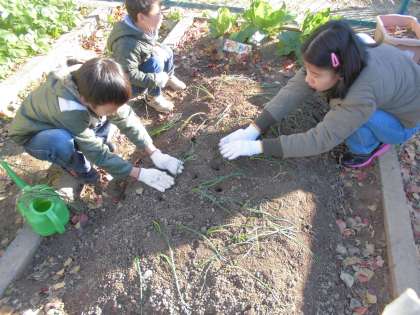 農園のサツマイモを収穫した場所に玉ねぎを植えました。