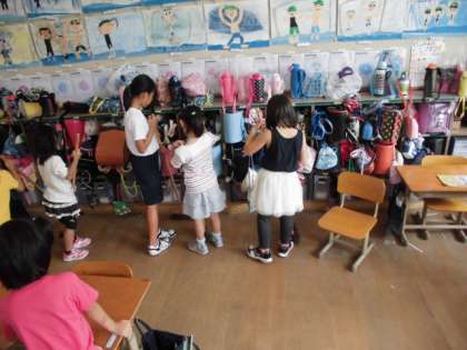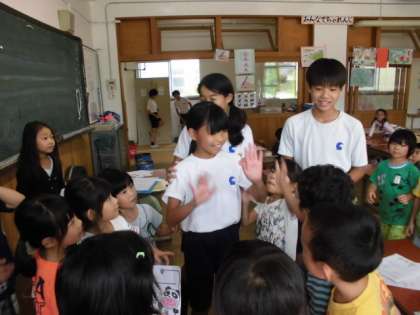 これまで給食の準備と掃除を6年生が教えにきてくれていました。係の仕事を自分たちでできるようになってきていました。学級活動の時間に話し合いを行い,これからは「自分たちだけでする」と決め,お世話になった6年生にお礼をしようと意見が出てきました。「どうしたら6年生に気持ちが伝わるかな。」と知恵をしぼった結果,手紙を書くことに決まりました。1年生が手紙を読むと6年生の人たちは照れくさそうに受け取っていました。