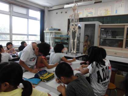 理科の学習で人の体の筋肉や骨の様子を確かめるために,