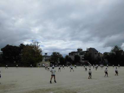ひさしぶりに晴れて,外でスポーツフェスティバルの練習をしました。