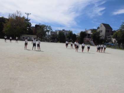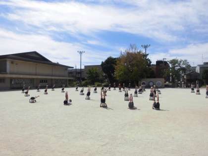 音楽に合わせながら,1人技から2人技,そして3人技に