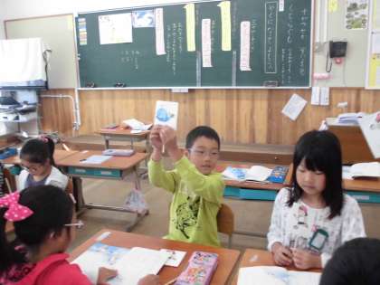 低ーい声でくじらぐもを演じるなど楽しい工夫がいっぱいの1年生です。
