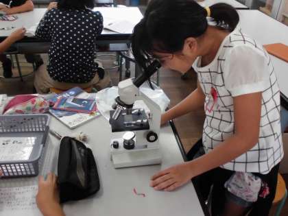 「植物の実や種子のでき方」では,植物の花粉を顕微鏡で観察をしました。アサガオだけではなく,いのちの庭に咲いている花の花粉も観察しました。
