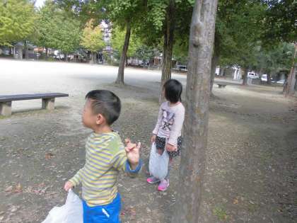 10月6日に,西ノ京児童公園に秋みつけにいきました。色づきはじめた色々な葉を拾ったり,とうかえでの種を見つけて回したり楽しく学習しました。秋のお宝を持ち帰り,自分のお気に入りの葉っぱをみんなで紹介し合いました。