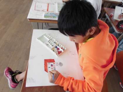 色を塗り始めた子どもたちもいます。