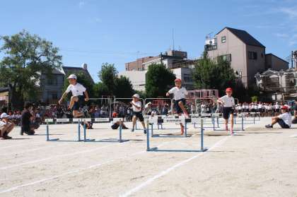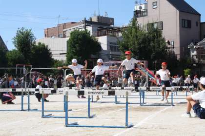 体育の授業での,ハードルの練習の成果を発揮しました。