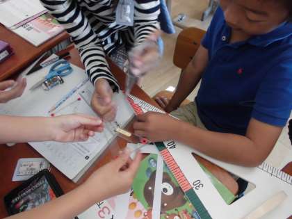 大きな三角定規と小さな三角定規の角の大きさが同じことに驚いていました。