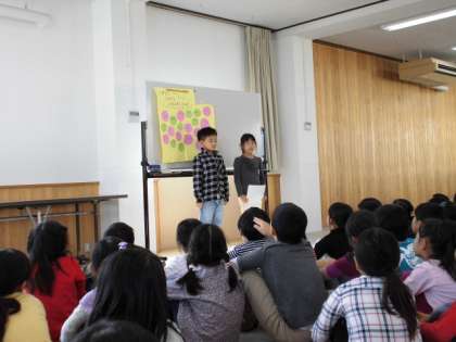 今日は,クラスごとにふわふわ言葉の発表をしました。それぞれの良いところを真似し合い,もっと仲良くなれるようにします!