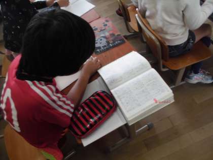 辞書を引いて漢字を調べる子,