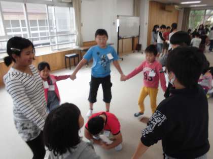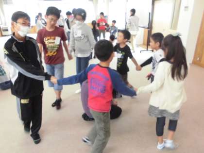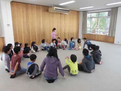 「かごめかごめ」や「ハンカチおとし」をして,1年生と楽しく遊ぶことができました。