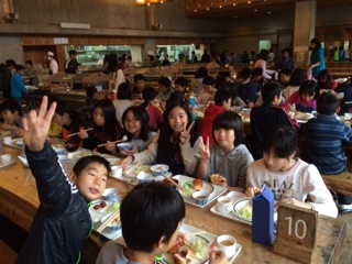 昨日の夜は少し眠れなかった人がいましたが,朝から元気に活動しています。少し時雨ています。朝の集いを終えて,朝食です。