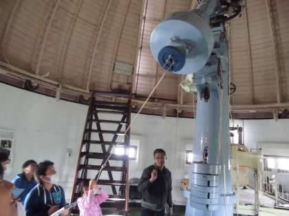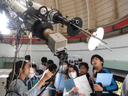 本館にある,45cmの屈折望遠鏡を見たり動かしたり貴重な経験を
