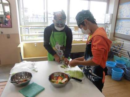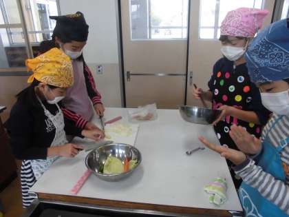 今日の3・4時間目に,野菜いためといり卵を作りました。