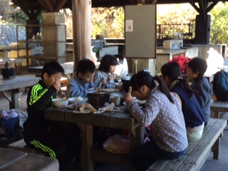 ここに来て2回目の飯ごう炊さん(豚汁)です。昨日よりも美味しいご飯が炊けました。手際も良く,自分たちだけで全部しました。天気も良く,美味しい昼食でした。