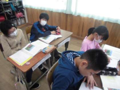 国語では,「この絵,わたしはこう見る」という学習をしています。