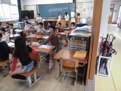休み時間にみんなで室内ゲームをして遊んでいます。