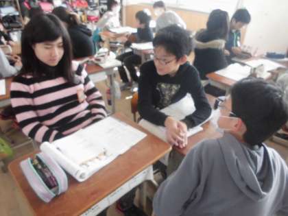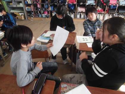 図をかいて考えたことを,班全員が納得するまで話し合いました。