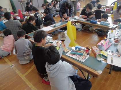 小さな巨匠展の合同作品作りが行われました。今年度は洛中小学校に中京支部の友だちが集まり楽しく活動しました。洛中小学校へは市バスを利用して行きました。みんなマナーを守ってバスに乗ることができました。