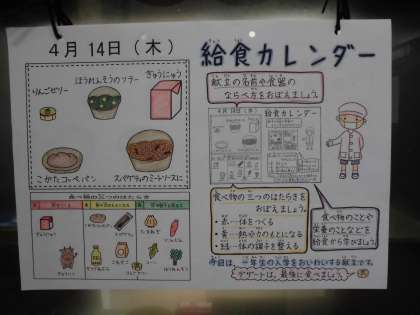 給食調理員さんが毎日給食カレンダーに色を塗ってくださっているおかげで,毎日美味しく給食をいただくことができています。
