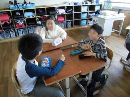 道徳の学習で,自分の長所や友達の長所について話し合いました。