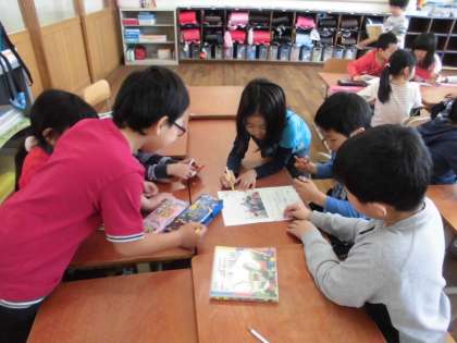 そこで,今日は,係の活動内容をグループで話し合って決めました。