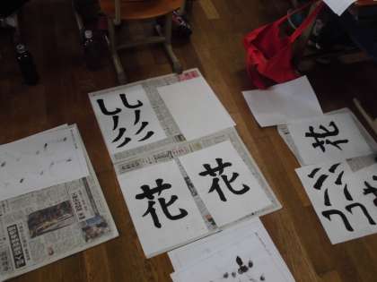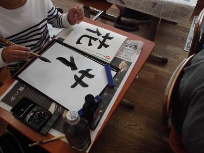 「花」という字を,筆の穂先の向きに気を付けながら書きました。