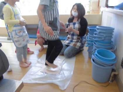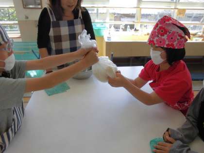 手や足を使って,しっかりこねました。