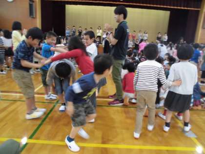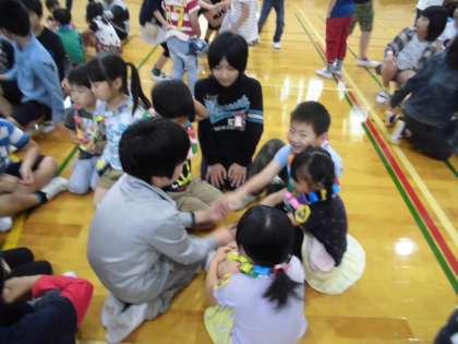 お兄さん・お姉さんたちにプレゼントをもらったり,楽しくゲームをしたりしました。