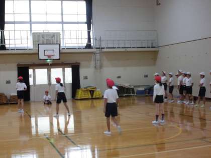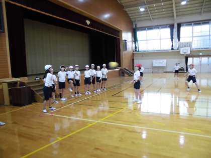 体育館でハンドベースボールをしました。