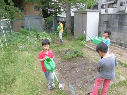 先週植えたさつまいもやトマト,なすび,じゃがいもの