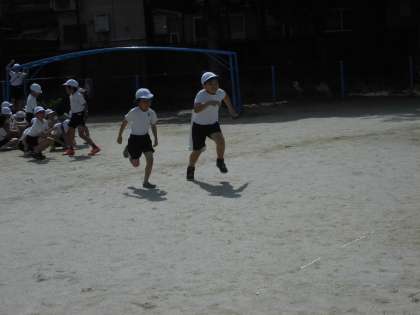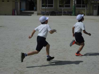 力いっぱい走りました。このタイムをもとに,リレーのチームを作ります。