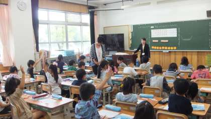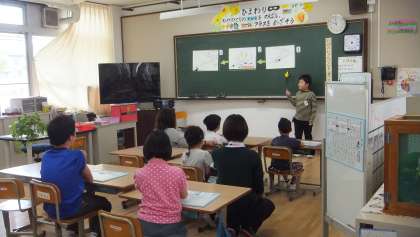 いつもとは違う雰囲気の中での授業に少し緊張していた子ども達ですが,